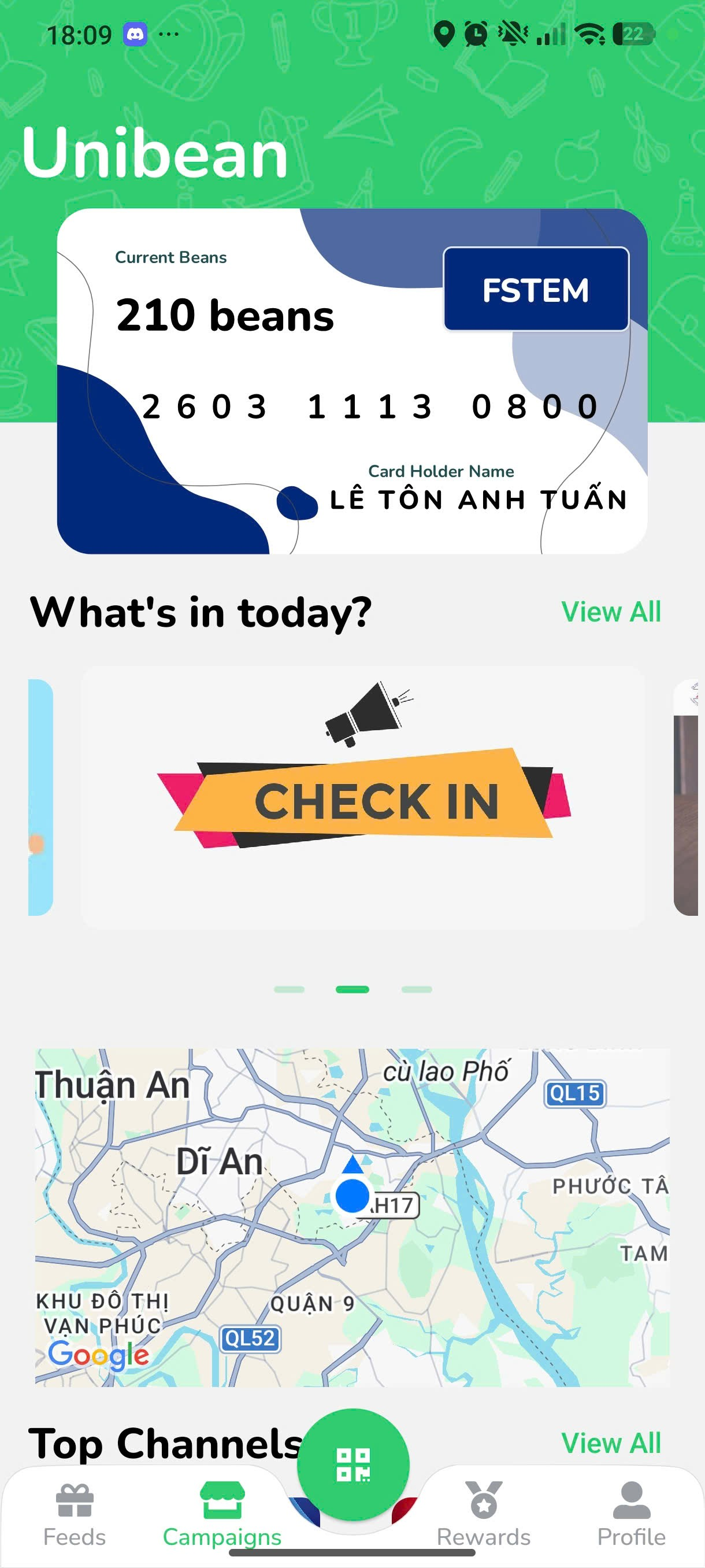 "Unibean giúp mình có thêm động lực tham gia các hoạt động ngoại khóa. Việc tích bean đổi voucher cafe rất tiện lợi!"